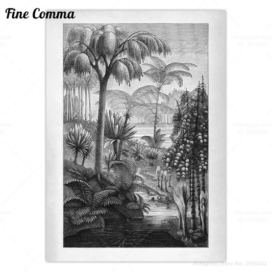 Vintage Poster Forest Landscape Canvas Print Palm Tree Wall Chart Educational Wall Art Jungle Illustration Tropical Wall Decor