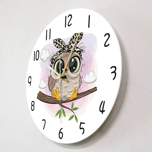 Cartoon Owl Wall Clock Digital Art Print Painting Owl Bird Animal Wall Art Home Decor Kids Living Room Clock Silent Non-ticking