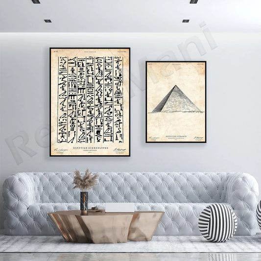 Egyptian hieroglyphs, Egyptian Pyramids wall art, Archeology gift, Ancient Egypt art, Egypt wall art, Historic print