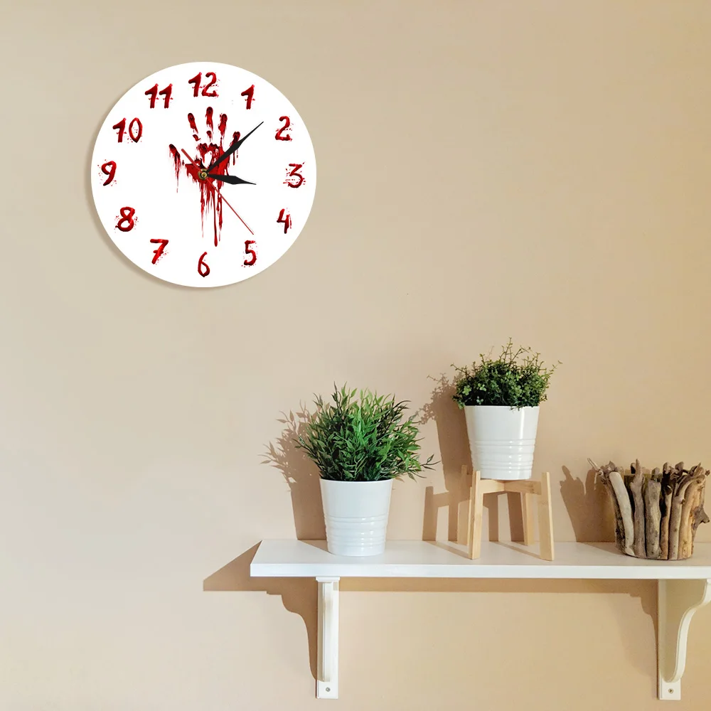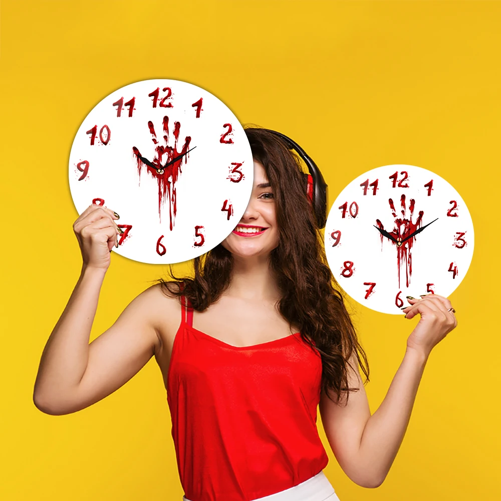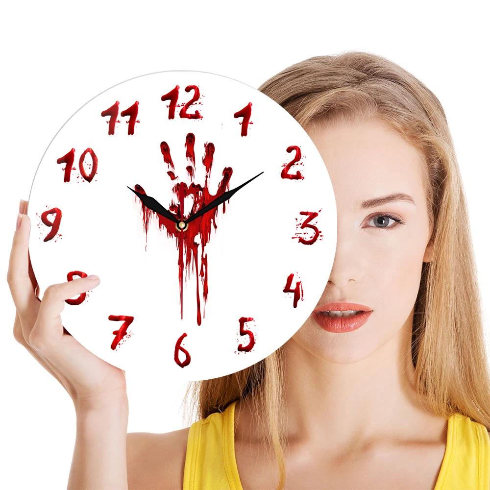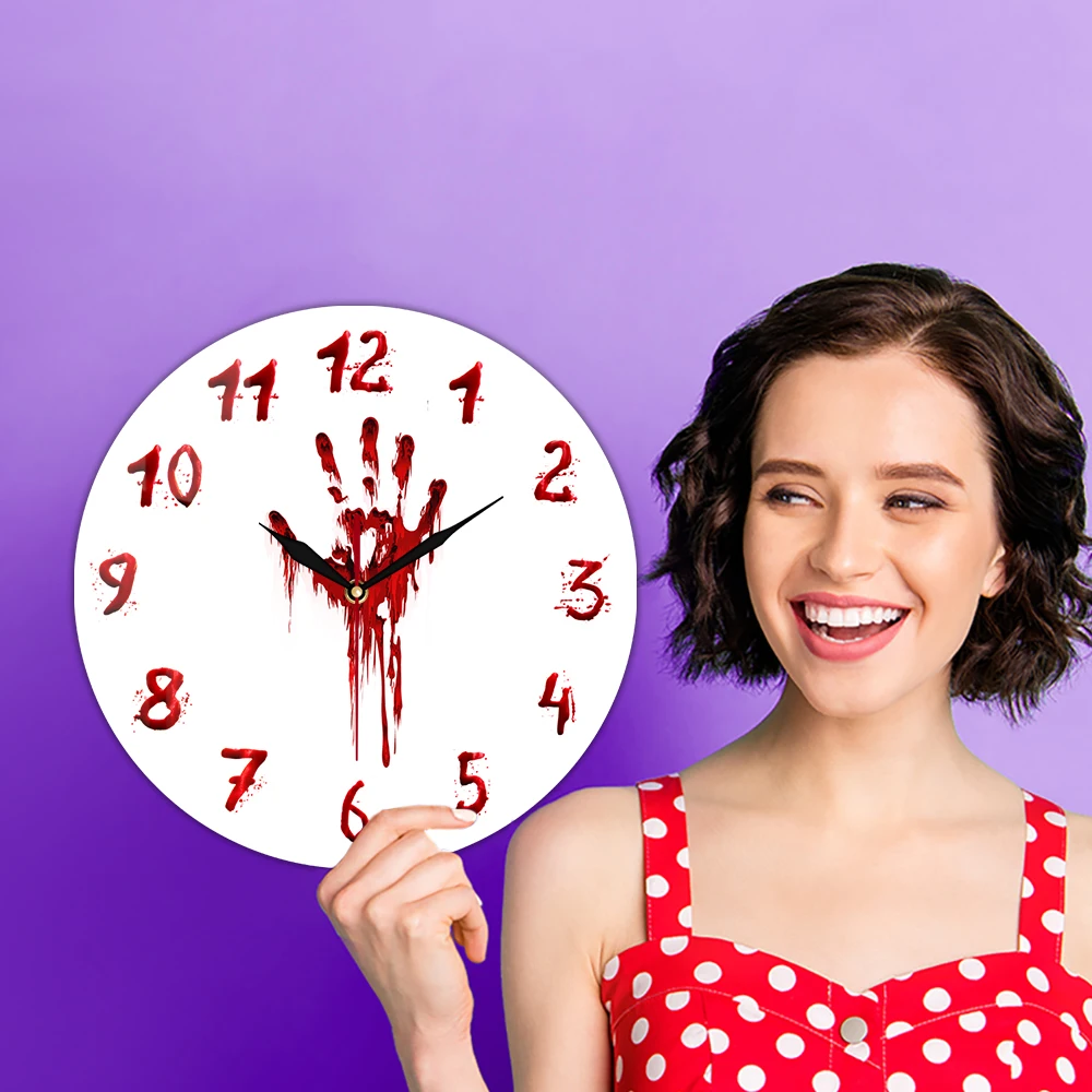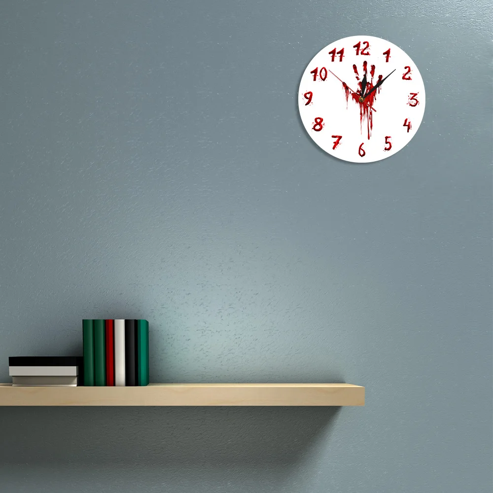 Bloody Hand Horror Hand Printed Wall Clock Home Decor Halloween Slasher Novelty Zombie Scary Wall Clock Evil Dead Wall Art Clock