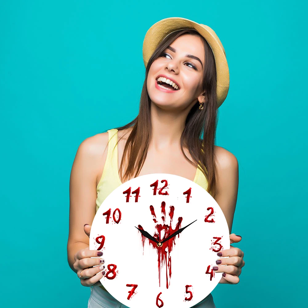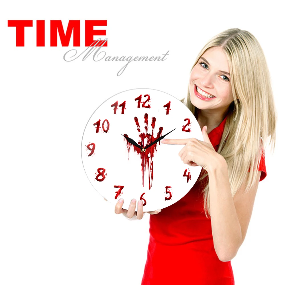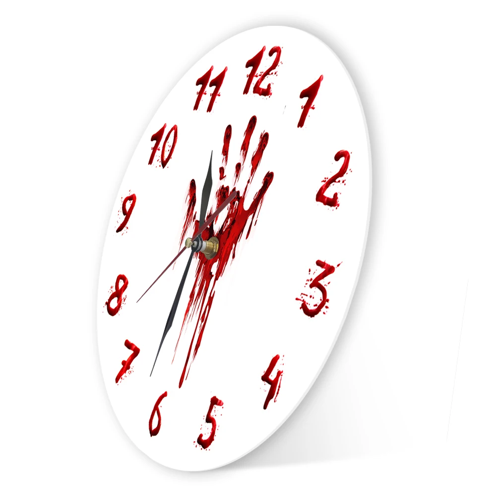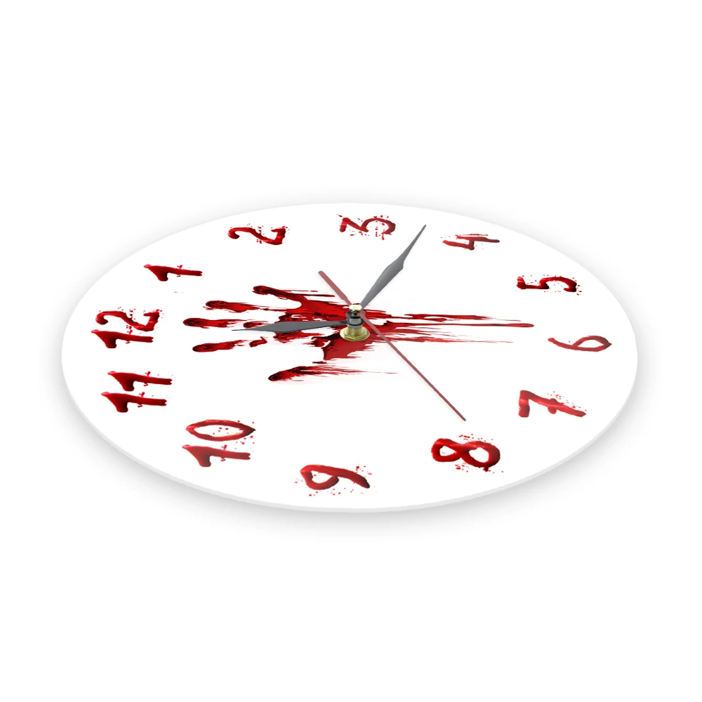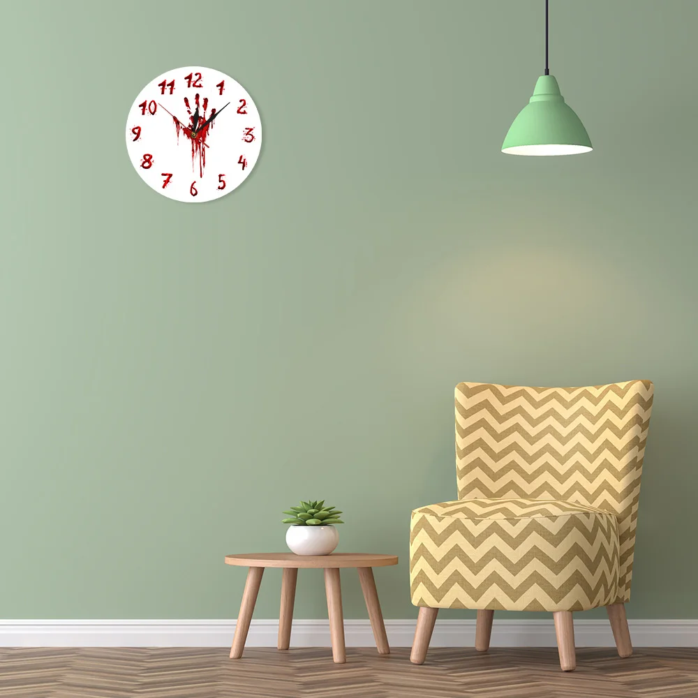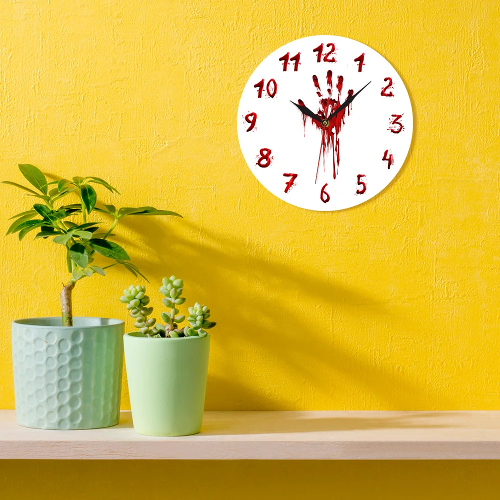 Bloody Hand Horror Hand Printed Wall Clock Home Decor Halloween Slasher Novelty Zombie Scary Wall Clock Evil Dead Wall Art Clock