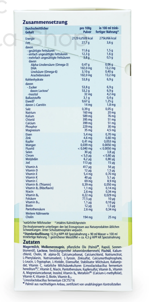 Backed by over 60 years of HiPP research, this AR formula includes Vitamins A, C & D, Iron, Calcium, and Omega-3 (DHA) to support your baby’s immune system, bone health, and cognitive development — all while keeping feeding calm and comfortable.