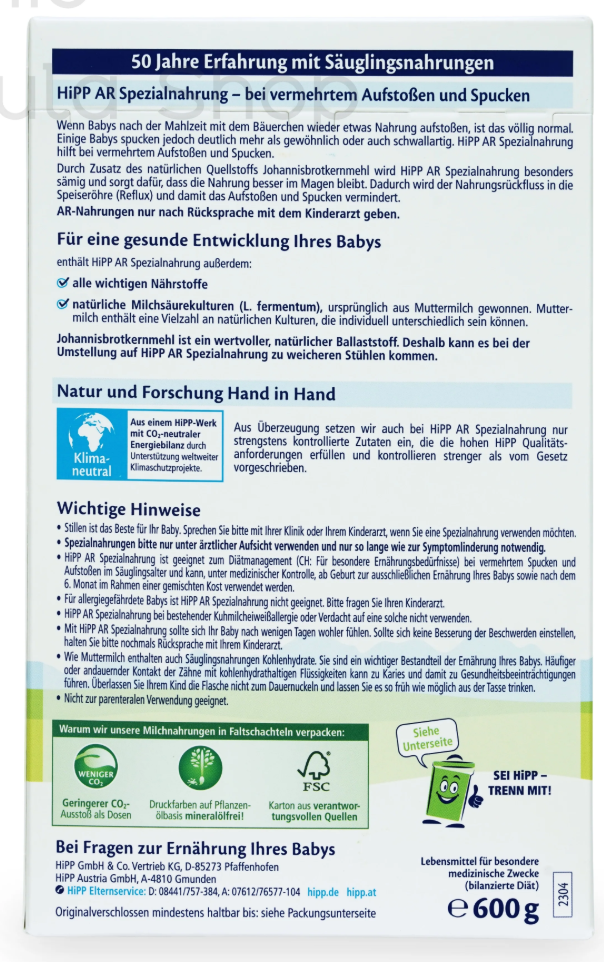 📦 1 × 600g tin of HiPP Anti-Reflux (AR) Cow Milk Formula