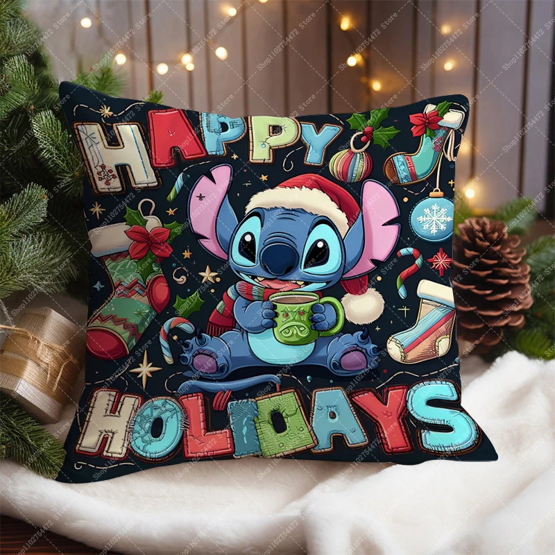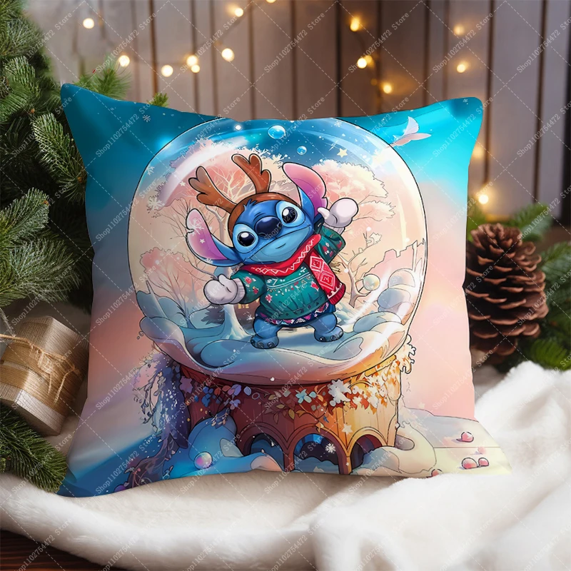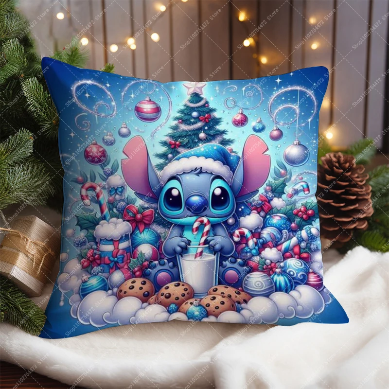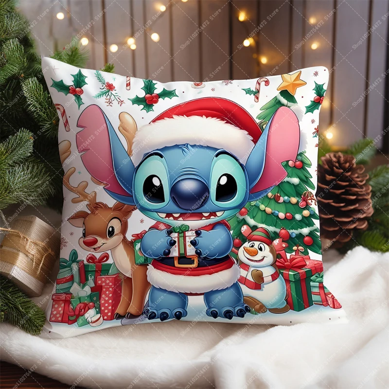 Lilo Stitch Anime Printed Pillow Case Disney Christmas Decorations Pillowcase Cartoon Cute Cushion Cover 45X45cm Xmas Home Decor