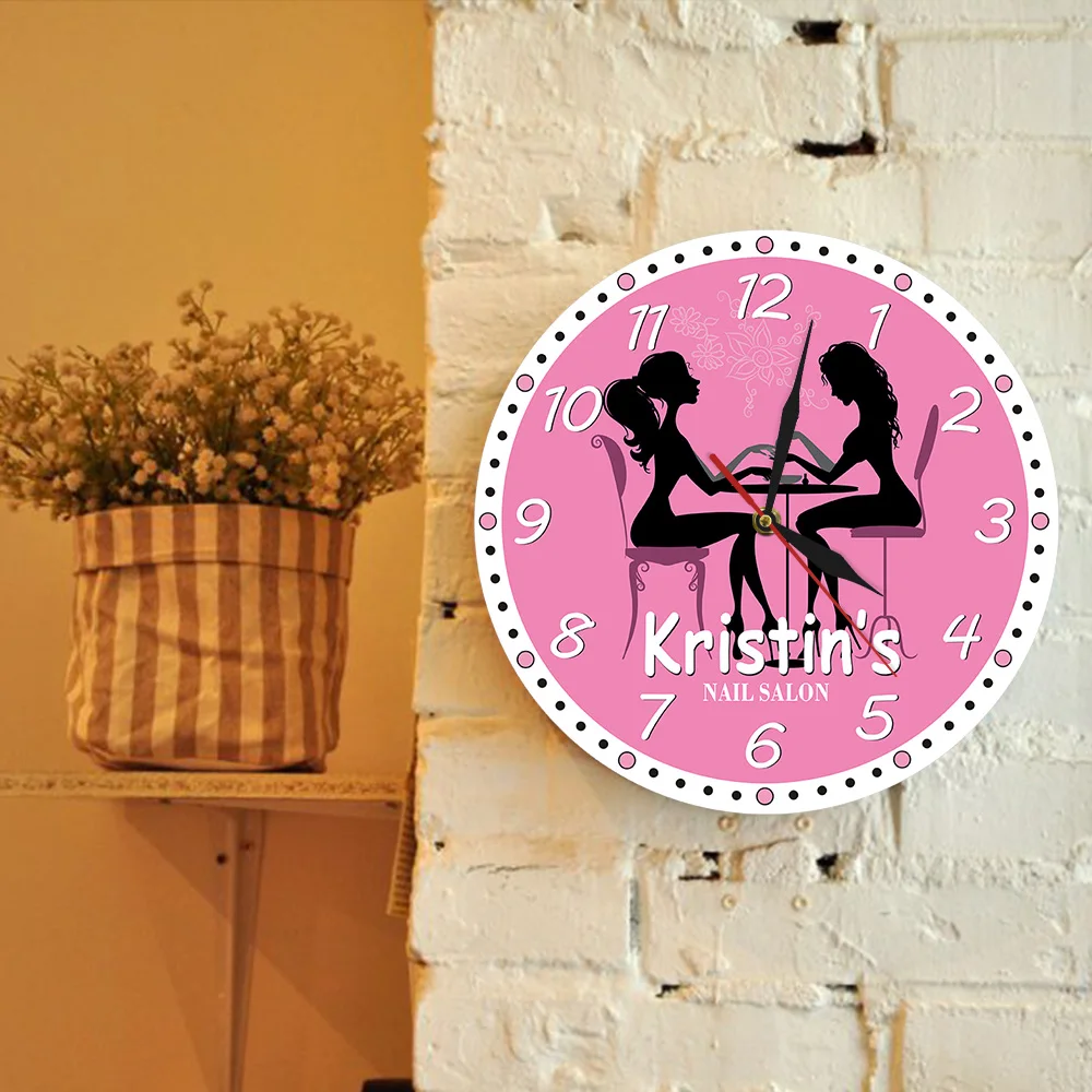 Manicure Salon Wall Clock Nail Salon Spa Personalized Wall Clock Custom Artwork Pedicure Art Nail Studio Business Wall Art Decor