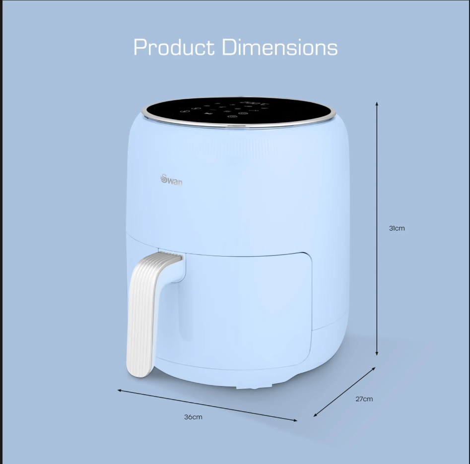 Add a touch of vintage charm to your kitchen with the Swan Retro Digital Air Fryer in Blue. Designed with powerful 1500W performance and advanced Swan Cyclone Technology, this air fryer delivers fast, even heat circulation to create crispy, delicious meals with minimal oil—perfect for healthier cooking every day.